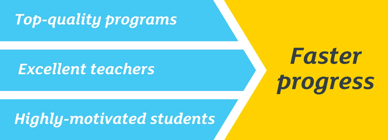 Being immersed in such a diverse environment every day means that you – and everyone else at school – truly need to speak English to communicate with each other. This practice outside of class time is essential to accelerate your progress.