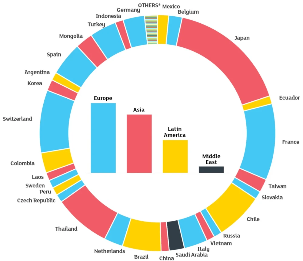 This mix pie represents our average nationality mix in 2024  – keep in mind that enrolments are different every year and the nationality mix may be seasonal.